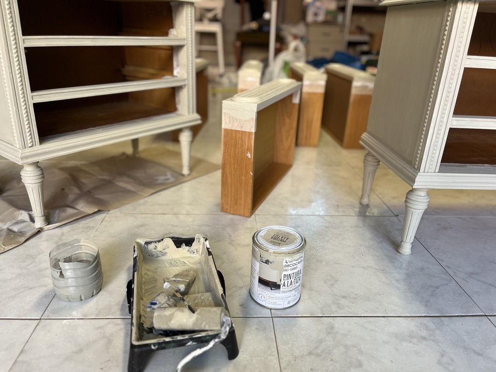 El proceso de pintar las dos mesitas de noche antiguas